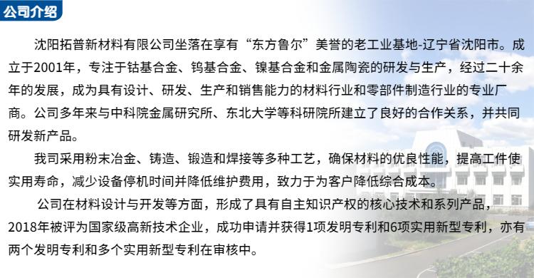 主营:鈷基、镍基、钨基合金、各种粉末冶金制品、陶瓷材料、各种金属材料及制品、粉末冶金设备及配件的制造与销售
