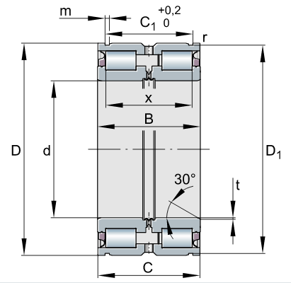 | 滚道类型 | 圆柱滚子轴承 | 密封防尘形式 | 两侧唇密封 |