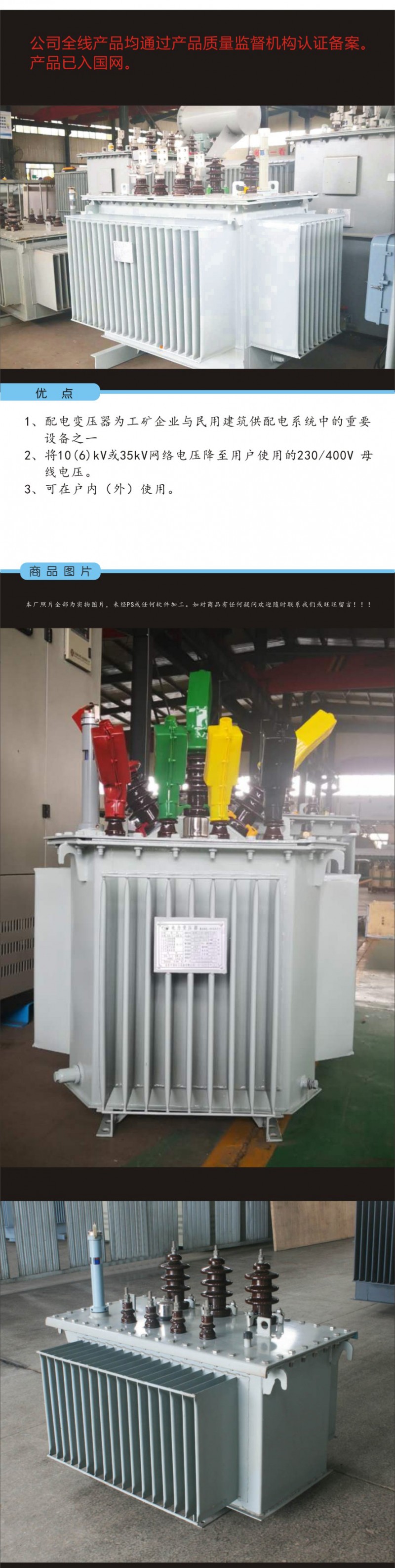 主营:变压器、高低压成套设备、预装式变电站制造、维修及技术咨询服务;输变电设备、电力自动化控制设备、新能源