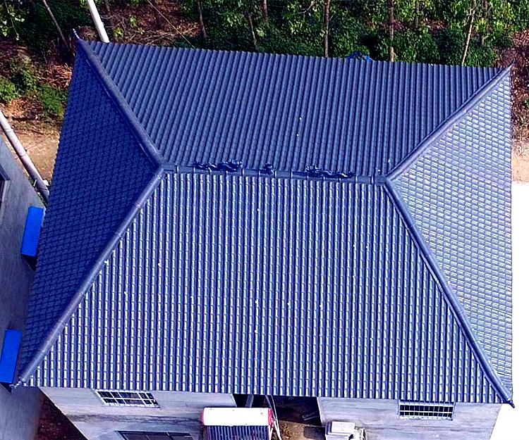 吉林四平树脂瓦安装 梨树伊通仿古瓦厂家合成树脂瓦选用德国巴斯夫公司生产的超高耐候性工程树脂作为瓦的表面材料,这种超高耐候性树脂在自然环境中具有超乎寻常的耐久性。它即使长期暴露于紫外线、强光、潮湿、寒热等恶劣环境下,仍能保持其颜色和物理性能的稳定性。经实验检测证明,合成树脂瓦可以确保十五年△E值小于5。
