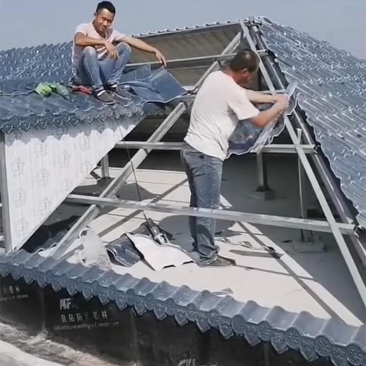 通化树脂瓦安装队 桓仁县仿古瓦 宽甸塑钢瓦ASA高耐候工程树脂是三元聚合物,具有耐化学腐蚀、超长耐候、隔热阻燃、颜色稳定、色彩丰富、不易褪色、并且光照光泽度层次分明等特点
