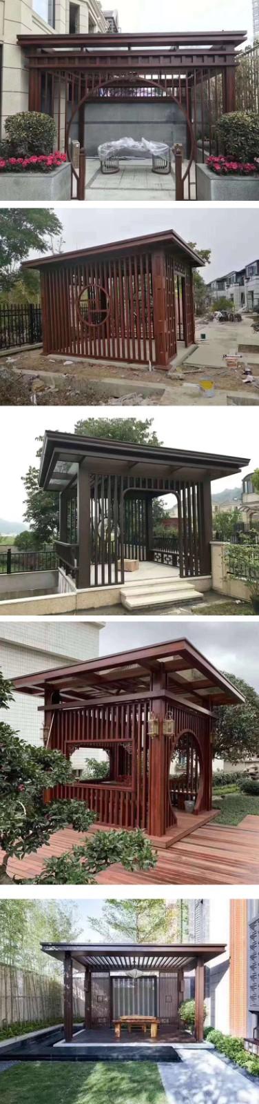 与木材相比中式铝合金凉亭和中式铝合金葡萄架具有多项优势: