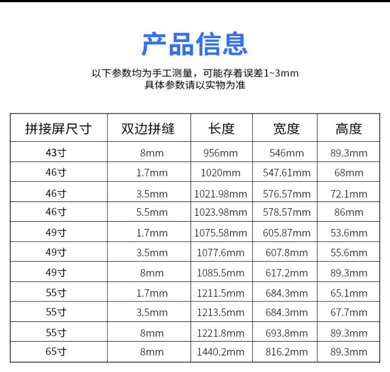 | 分辨率 | 1920*1080 | 拼缝 | 1.8mm 3.5mm |