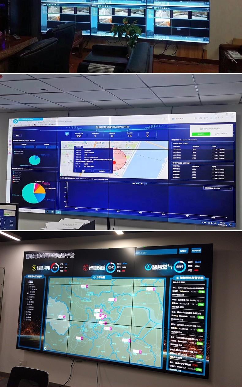1、液晶拼接屏分几个主要部分,液晶面板、驱动板、电源板、外壳、内置的拼接处理器等。