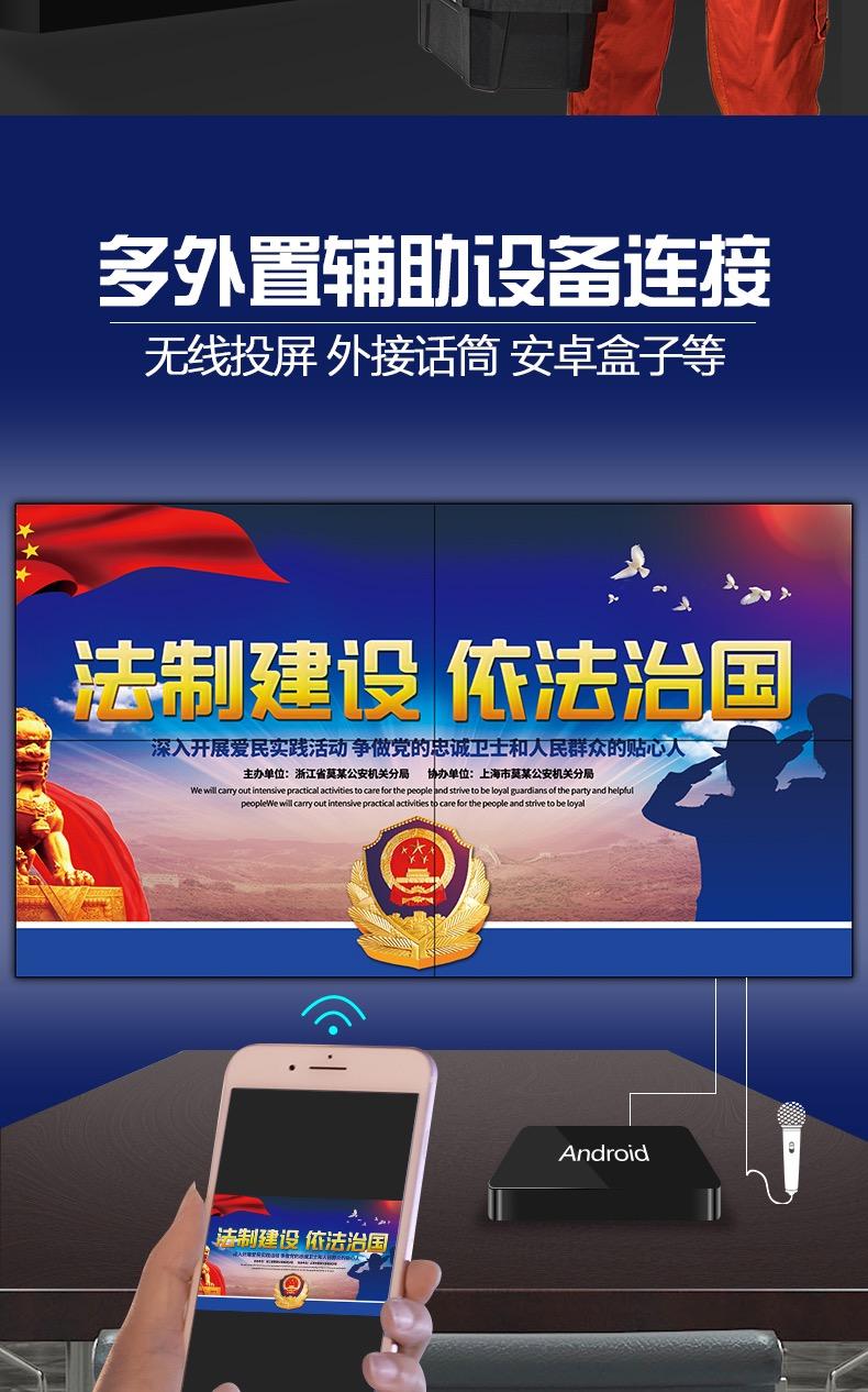 4、输入信号类型:现在市面上有的厂家为贪图便宜用一些劣质的产品来代替,这些劣质拼接屏一般只支持单一的信号输入和输出功能,并不具备完整的输入信号类型,所以在购买前一定要看清楚它的支持的输入信号类型,以免造成不必要的财产损失。