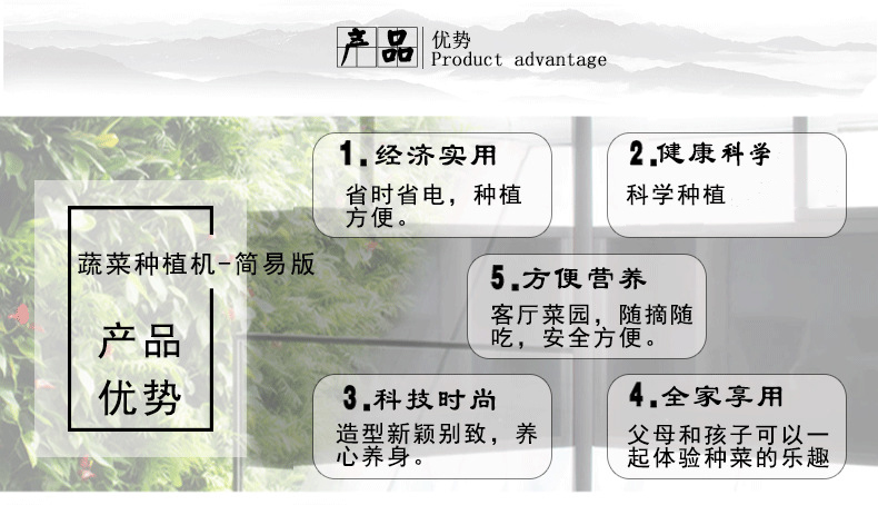 | 风格 | 时尚 | 应用场景 | 家居摆设,绿化工程,酒店,办公室,家庭园艺,阳台菜园,商场,大棚采摘园 |