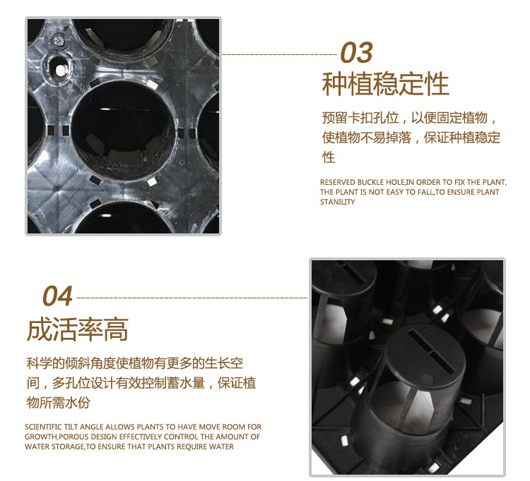 | 特性 | 发光,自吸水,不易变形,透气,牢固耐用,可降解,节水抗旱,透光 | 使用形式 | 壁挂式,组合式 |