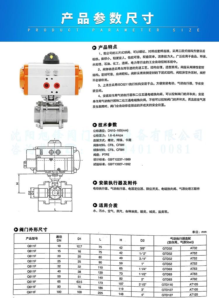 | 产品名称 | 气动不锈钢丝扣球阀 | 品牌 | 旭峰 |