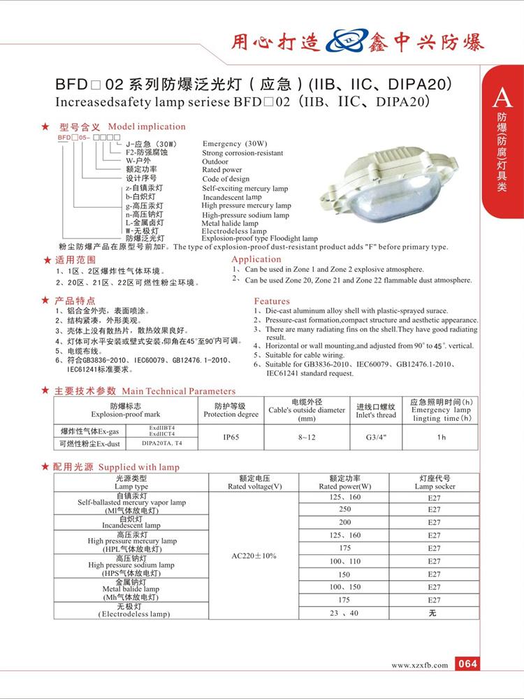 | 应急照明时间(min) | 30 | 防爆标志 | ExdIIBT4,ExdIICT4,DIPA20TA,T4 |