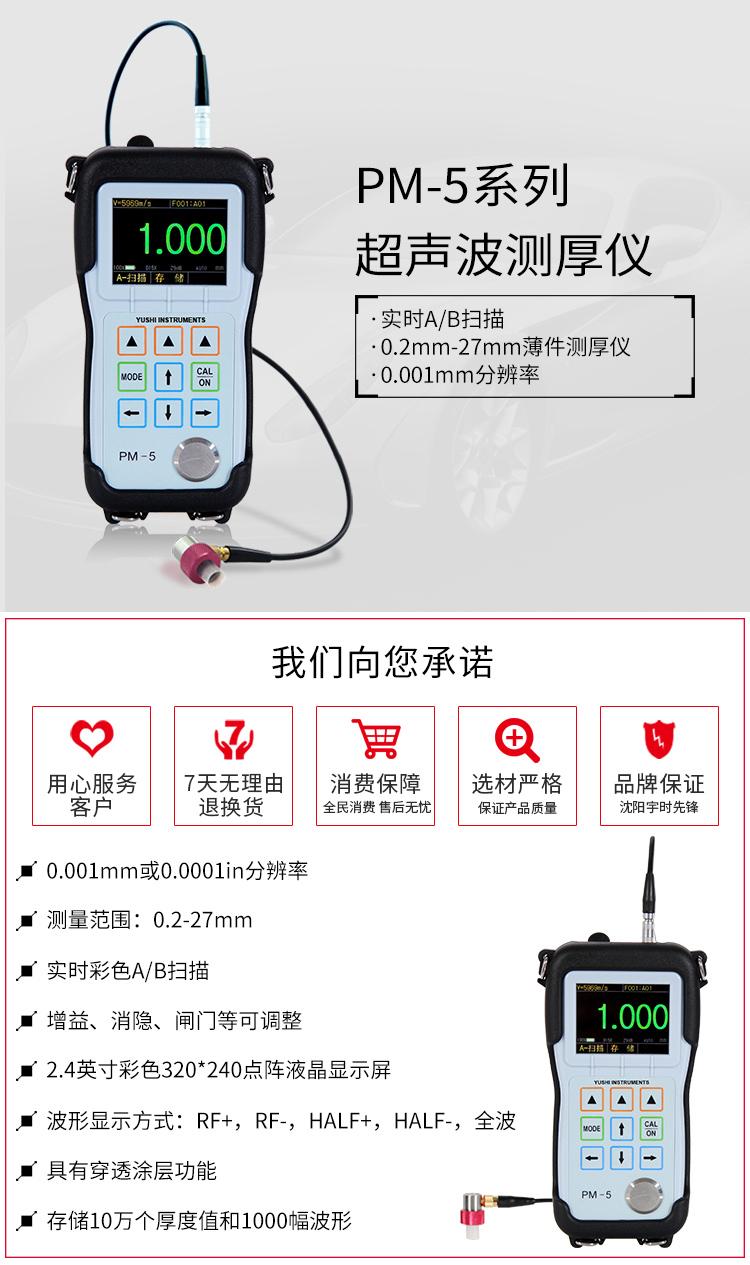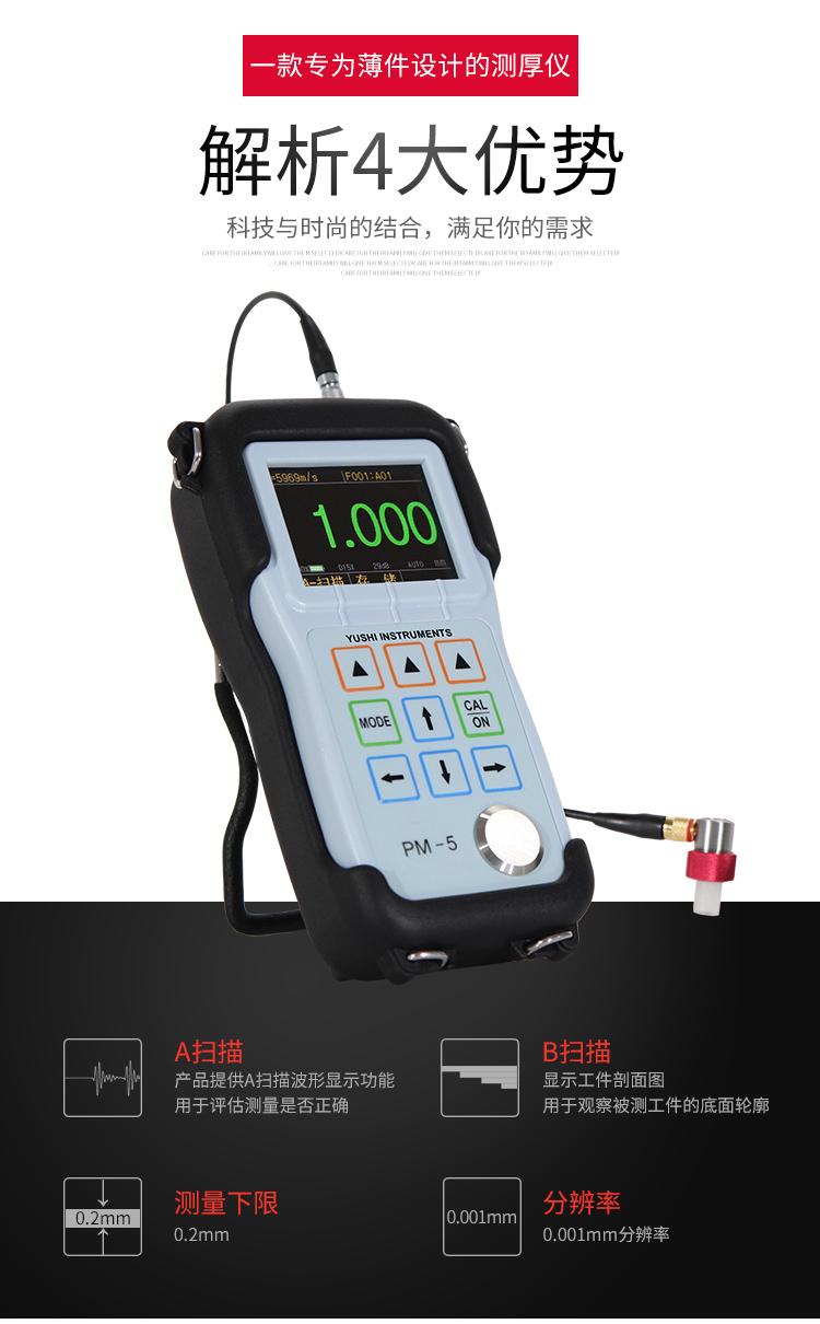 | 显示屏 | 2.4QVGA(320×240)彩色OLED屏,对比度10000:1 | 工作原理 | 使用单晶延迟探头的超声波测量原理 |