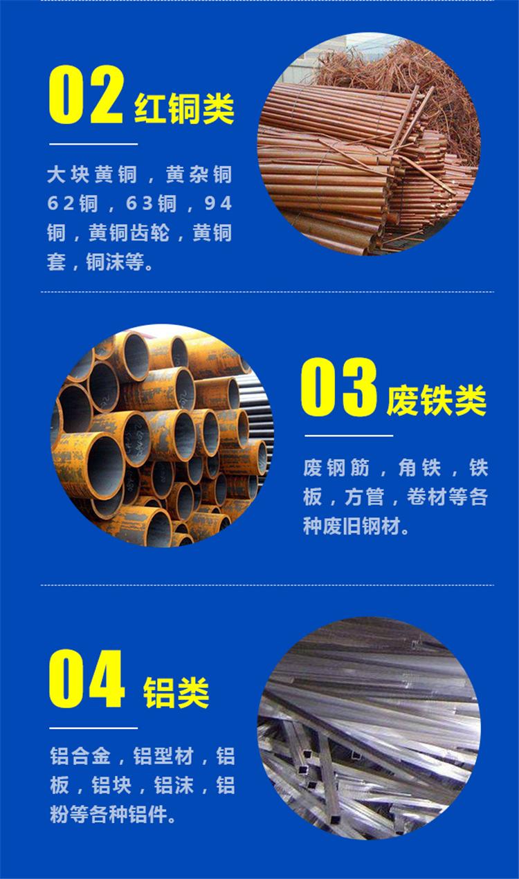 7、废铁类:废钢筋,角铁,铁板,方管,卷材等各种废旧钢材。