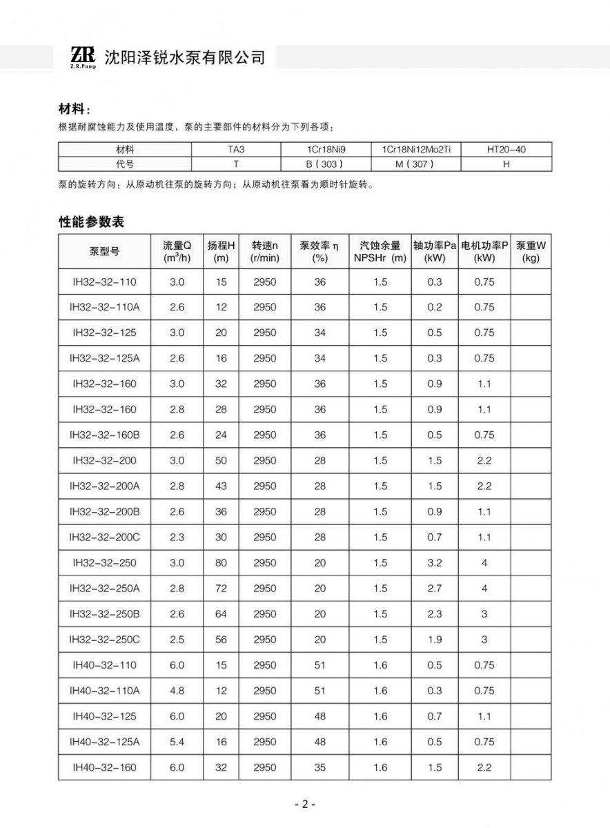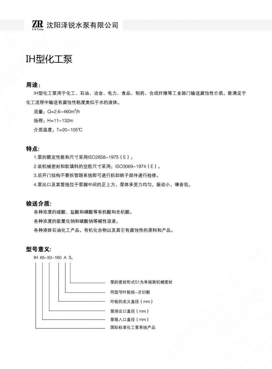 | 产品名称 | IH型化工离心泵 | 品牌 | 泽瑞水泵 |