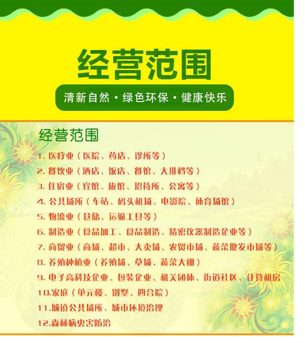 主营:有害生物、森林病虫害消杀、消毒服务;害虫防治服务;清洗服务;清洁服务;消毒、消杀用品、农药、化工产品