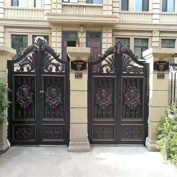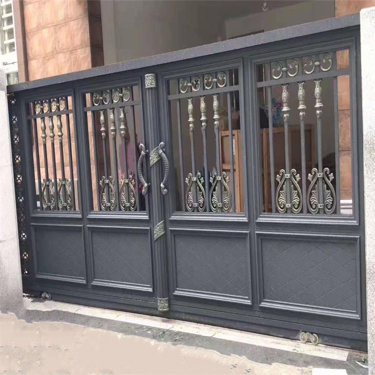 辽宁沈阳庭院门 小区别墅庭院铝艺大门折叠电动门平移对开防盗门