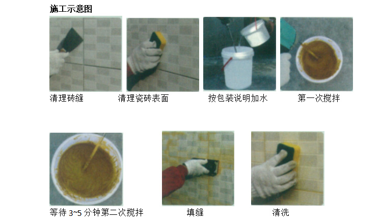3、填缝施工前请将瓷砖表面和缝隙清理干净、无杂物残留
