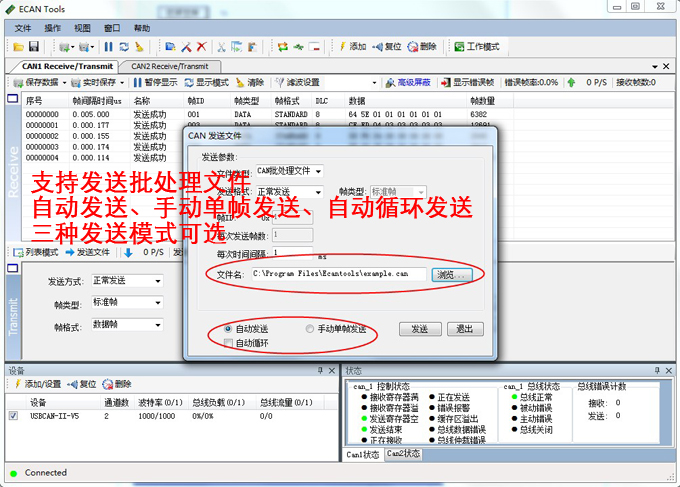 广成科技USBCAN分析仪还具有总线数据保存及录播功能